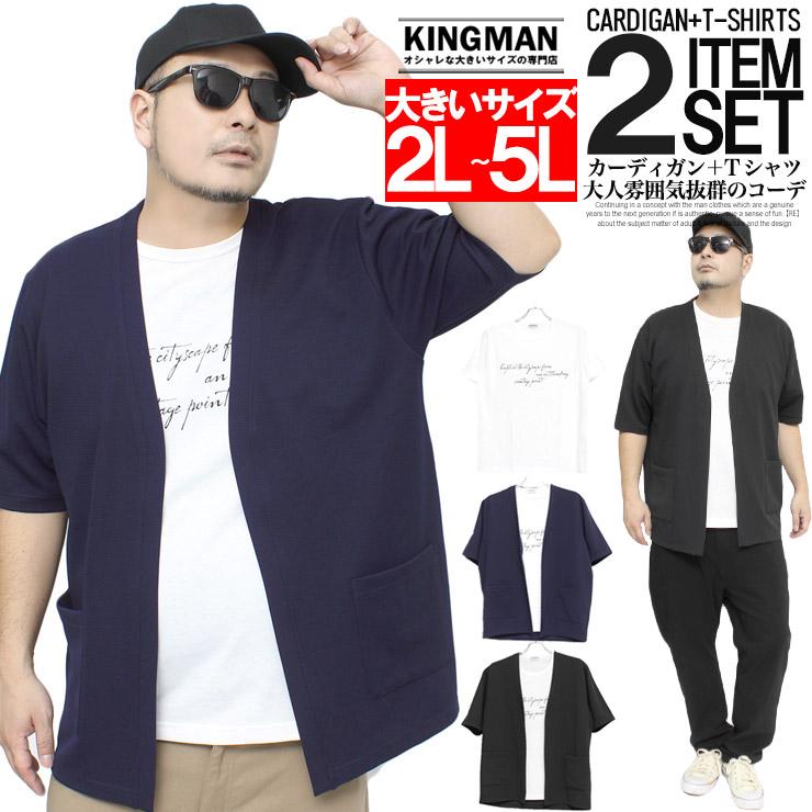 送料無料 カーディガン メンズ 大きいサイズ 半袖 Tシャツ プリント 2点セット 七分袖 黒 7分袖 半袖tシャツ物 ロゴt Vネック Kingman 通販 Yahoo ショッピング
